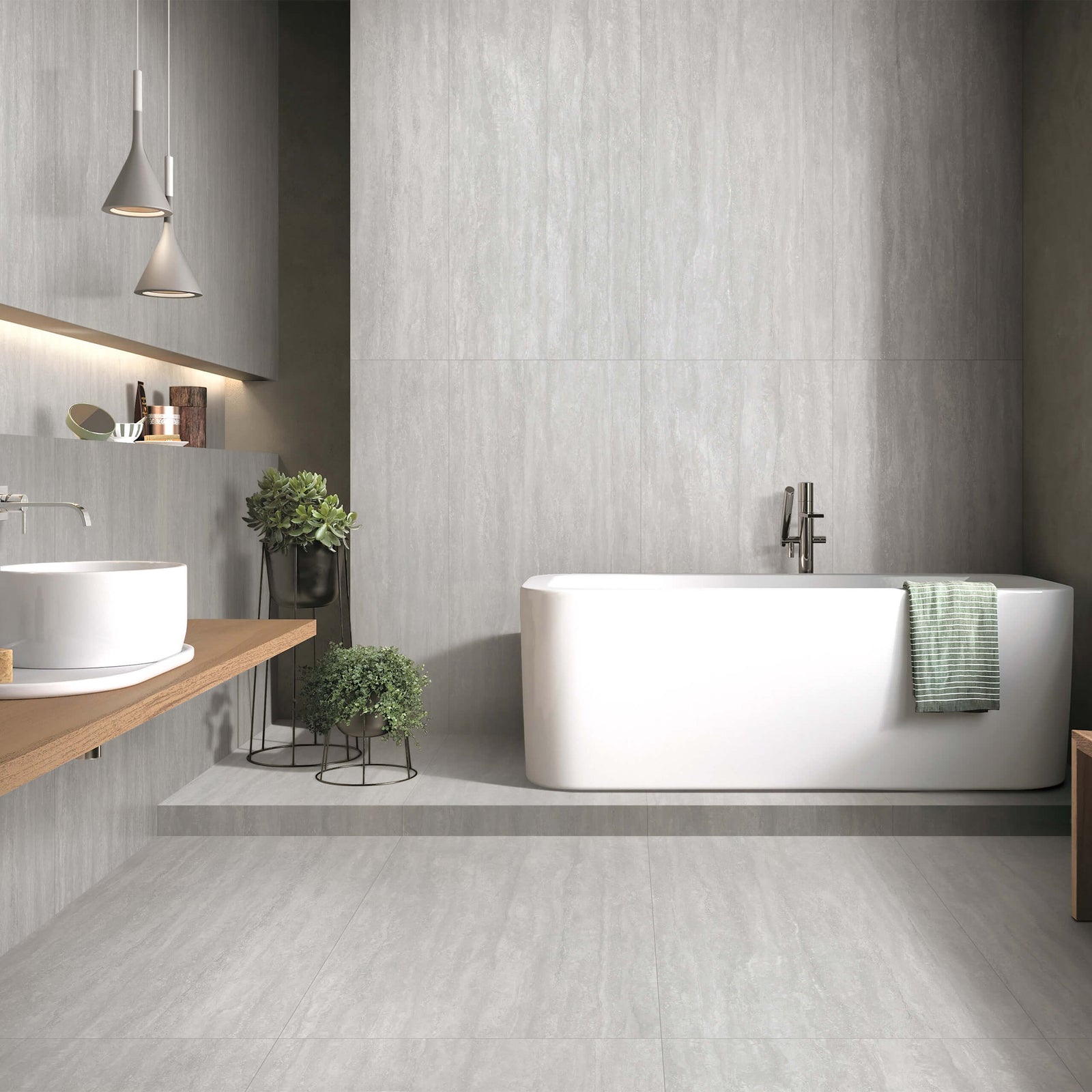 Wall-hung vanities can save space whilst adding depth and texture to your bathroom area.