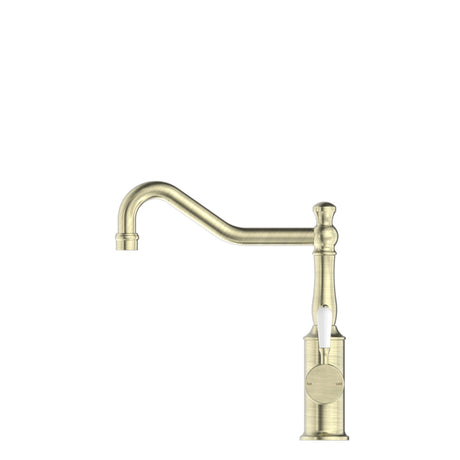 Nero York Kitchen Mixer Goosneck Spout With White Porcelain Lever Aged Brass