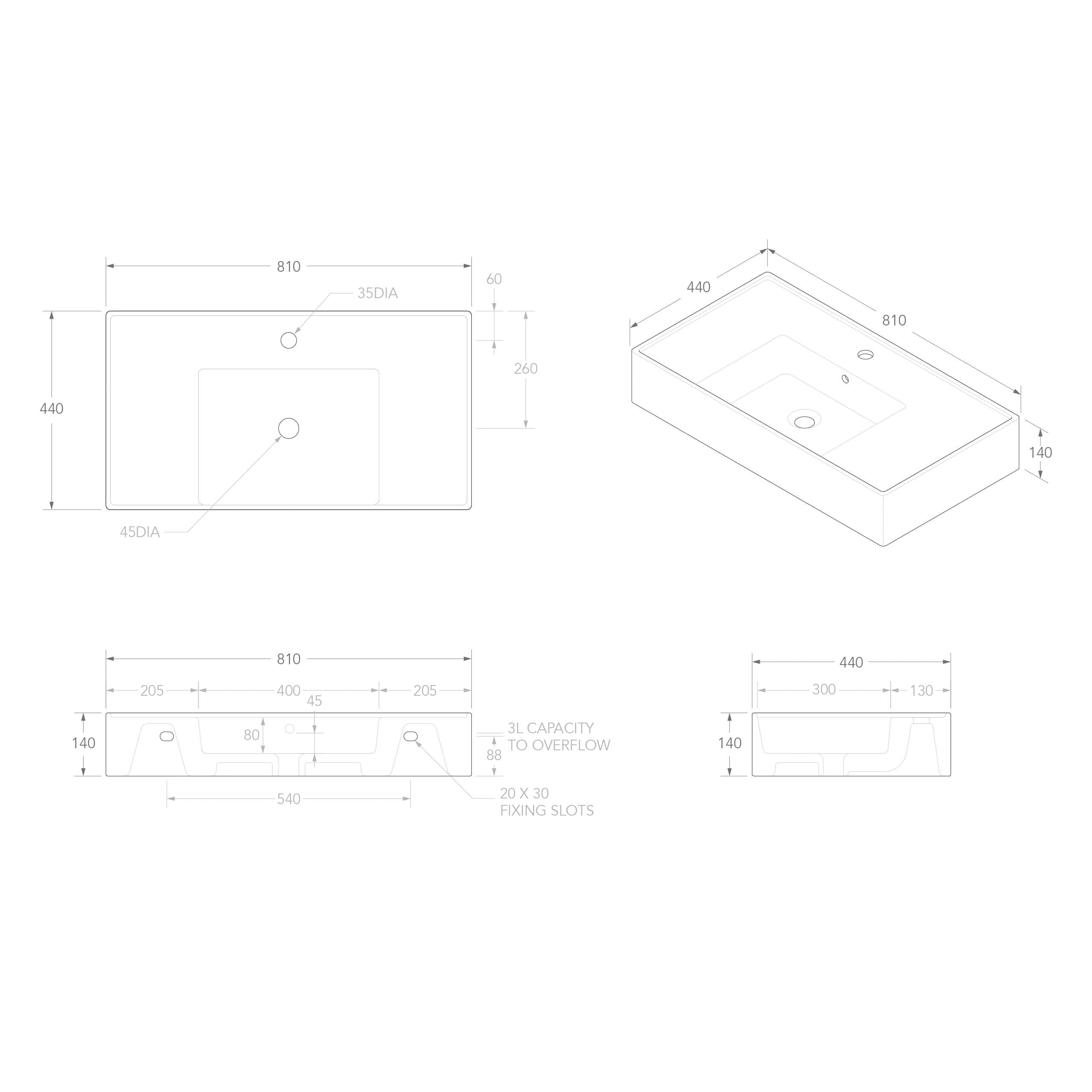 ADP Teorema Wall Basin 800 Centre without Tap Hole