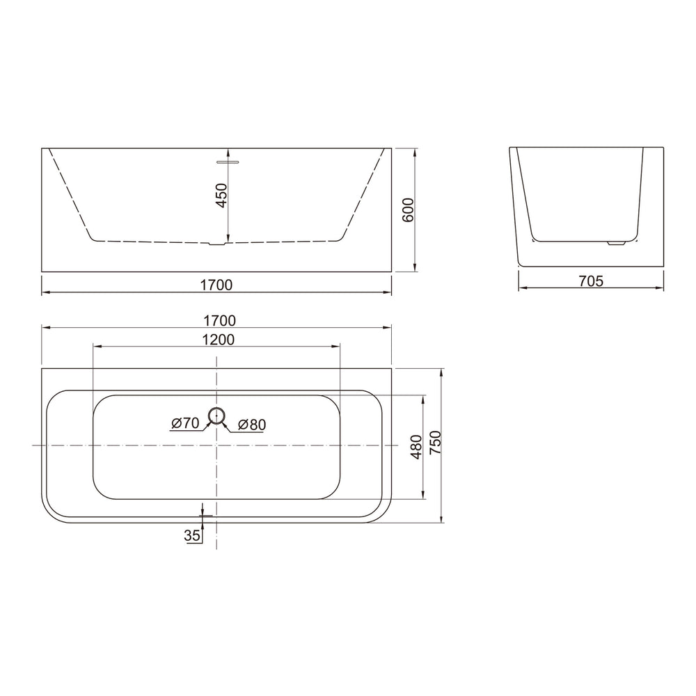 BelBagno Alto Back to Wall Acrylic Bath 1700mm Semi Gloss White Bath BelBagno