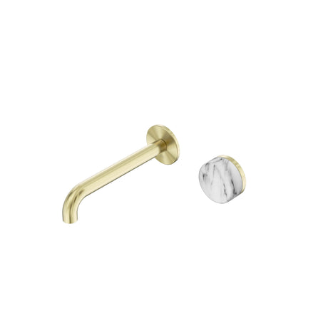 Nero Serenity Progressive Wall Basin Mixer 185mm Spout With Arabescato Corchia Handle Brushed Gold