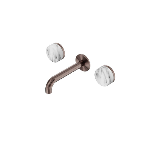 Nero Serenity Wall Basin Set 185mm Spout With Arabescato Corchia Handle Brushed Bronze