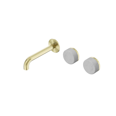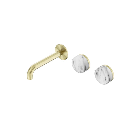 Nero Serenity Wall Basin Set 160mm Offset Spout With Arabescato Corchia Handle Brushed Gold