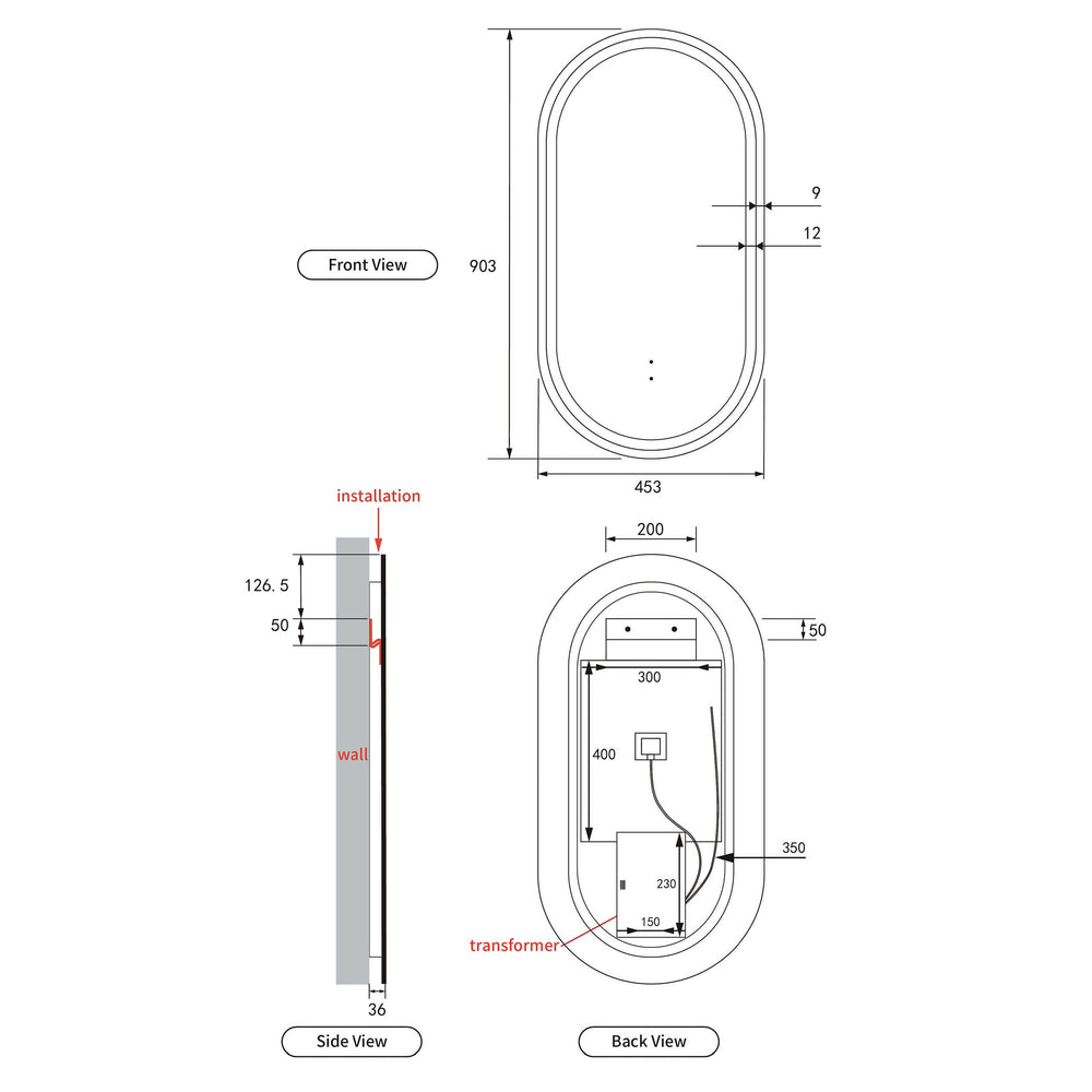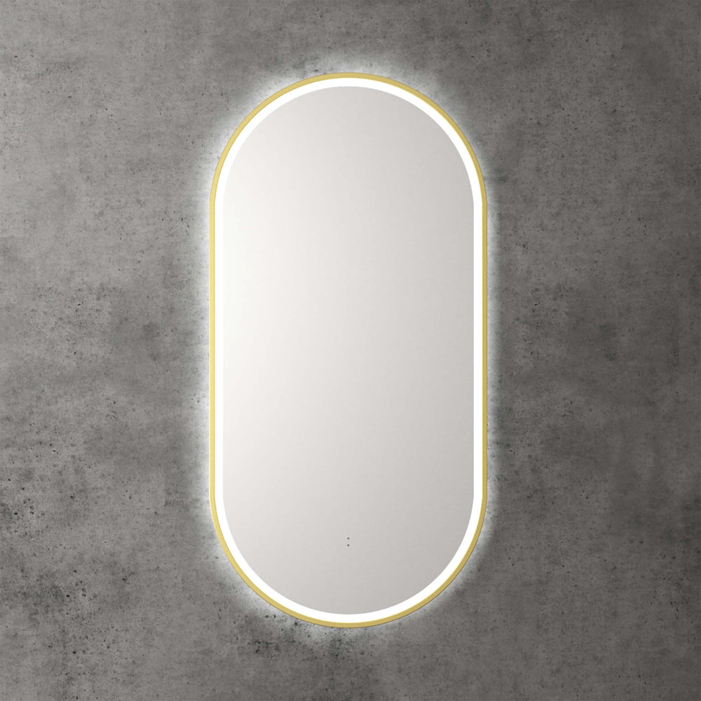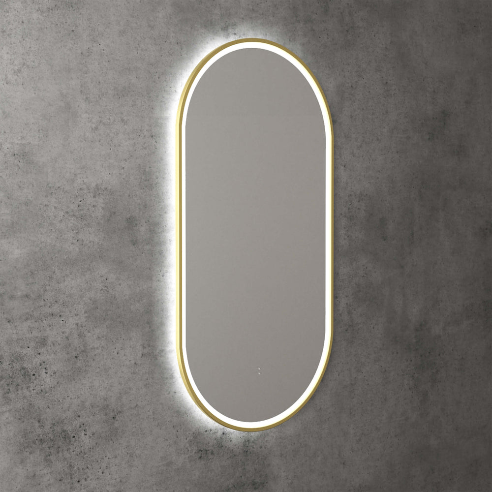 Aulic Beau Monde Touchless Framed Led Mirror 903x453mm Oval Brushed Gold