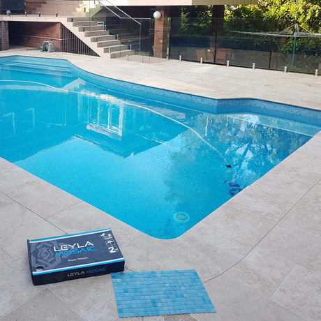 Blue mosaic tiles evoke serenity – perfect for your bathroom to help you achieve a spa-like ambience, or your swimming pool.