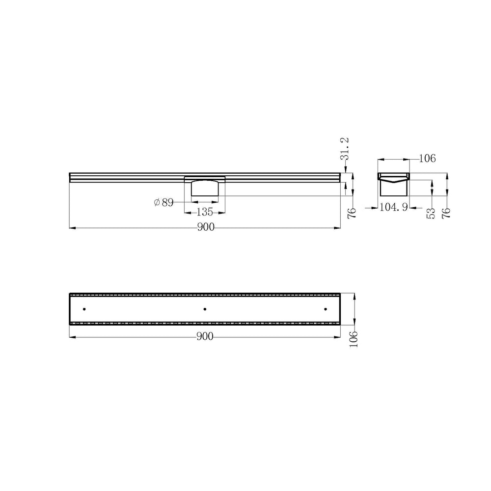 Nero Tile Insert V Channel Floor Grate 900mm with 89mm Outlet Brushed Nickel