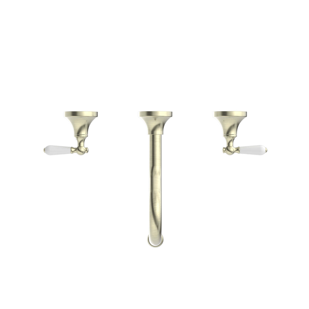 Nero York Wall Basin Set With White Porcelain Lever Aged Brass