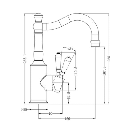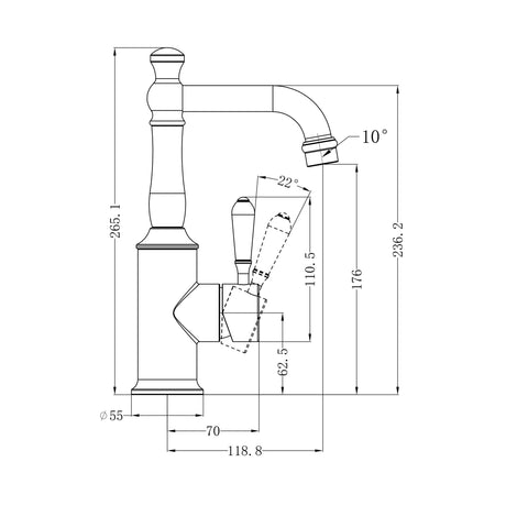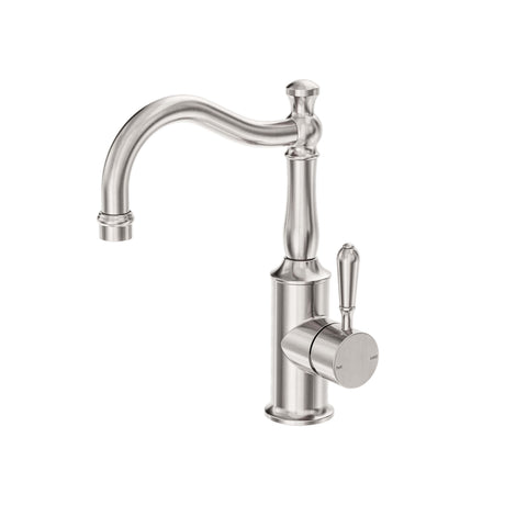 Nero York Basin Mixer Hook Spout With Metal Lever Brushed Nickel