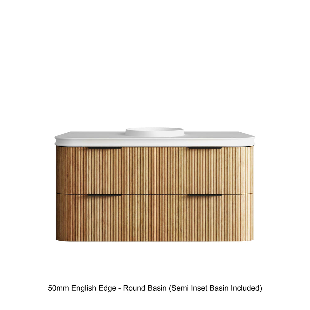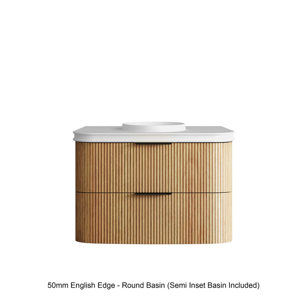 Havana Woodland Oak Fluted Wall Hung Single Basin Vanity 50mm English Edge Top