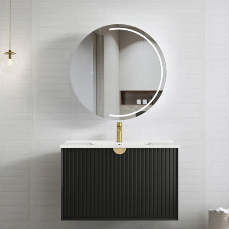Aulic Windsor Touchless Framed Led Mirror 703mm Round Matte Black