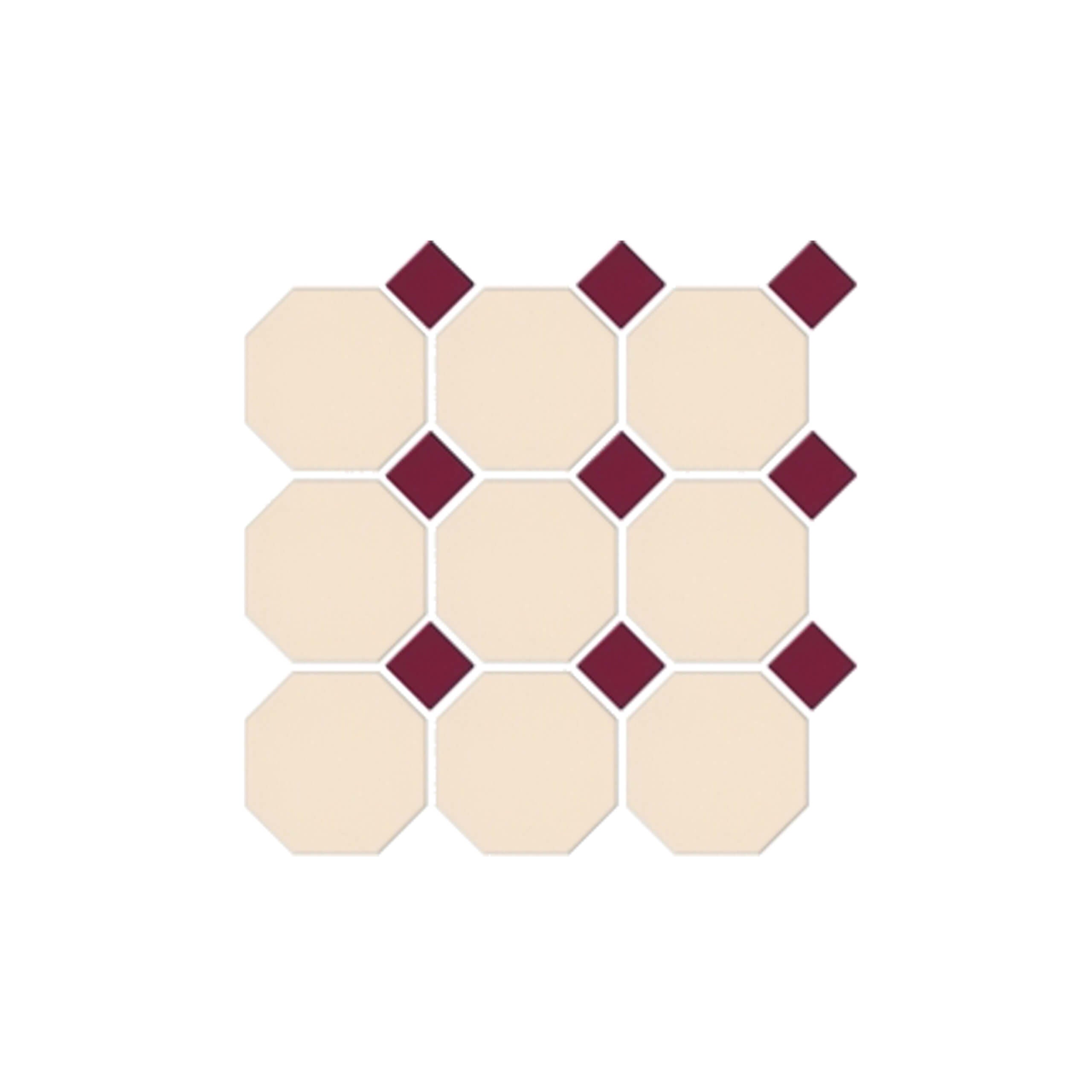 Octagon 97x97 Matt Cream With Matt Burgundy Dot