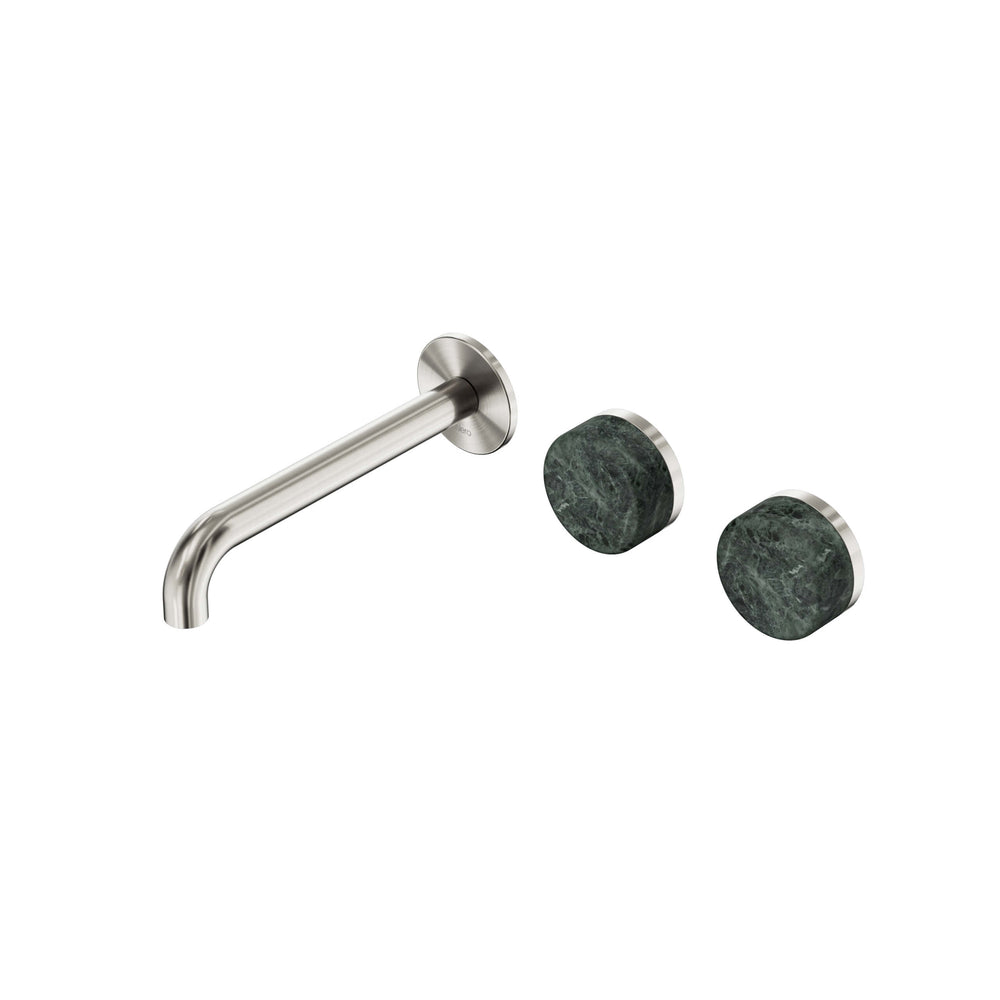 Nero Serenity Wall Basin Set 185mm Offset Spout With Verde Alpi Handle Brushed Nickel