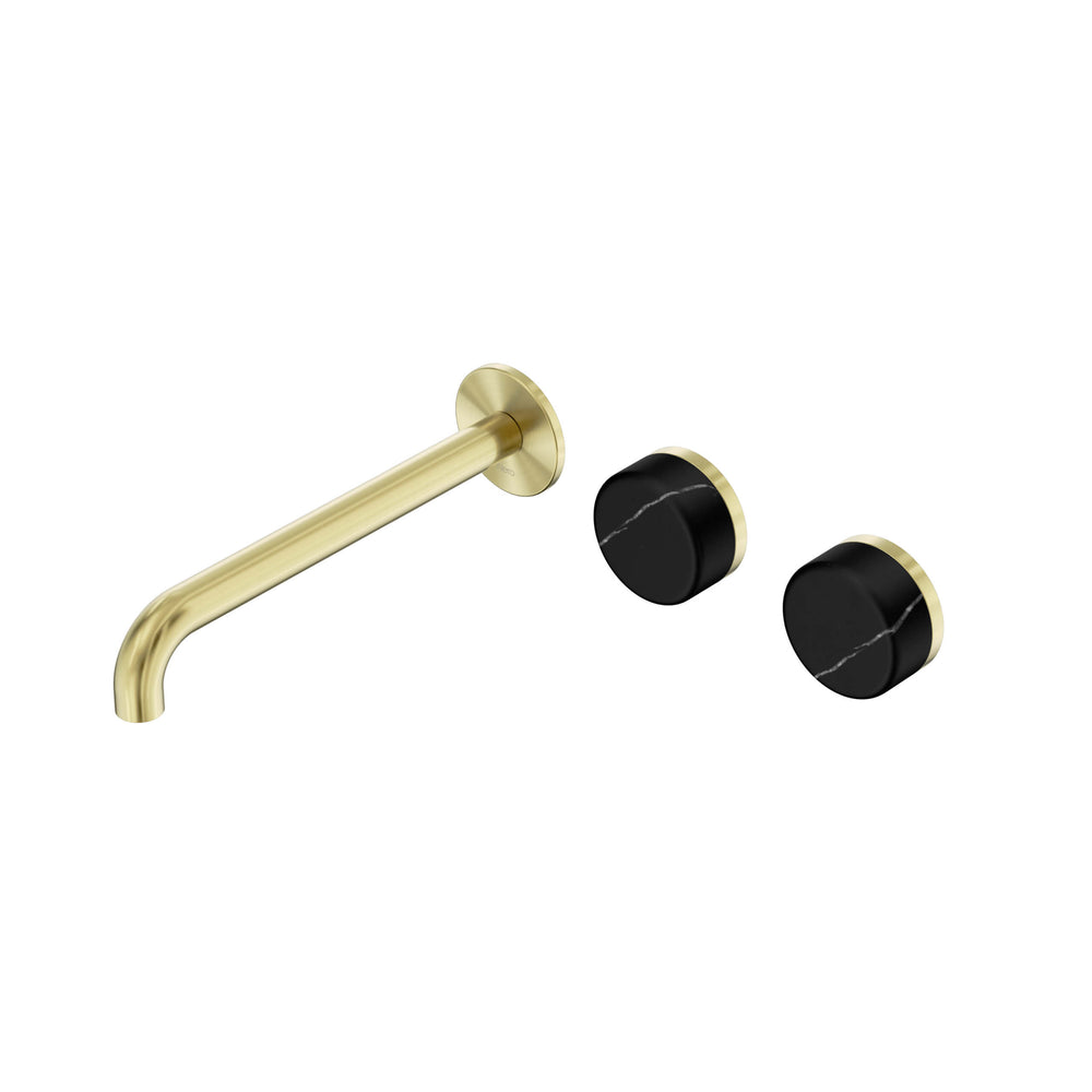 Nero Serenity Wall Basin Set 220mm Offset Spout With Marquina Black Handle Brushed Gold